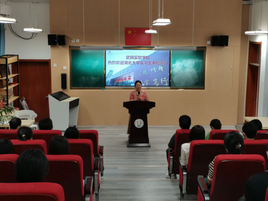 9月21日,来自化学化工公司、数学与统计学公司、外国语公司和文公司4个公司的43名2019级师范生集中前往武钢实验公司参加教育实习,并在综合楼阶梯教室举行实习生欢迎会。武钢实验公司董事长林本富、副董事长李玉洁、各年级教学组长,beat365体育官网外国语公司副经理蔡蕾、党委副书记占婧、实习带队教师陆小丽,beat365师范教学研究与实践教学办公室主任朱琦,化学化工公司实习带队老师翁玥,数学与统计学公司实习带队老师付辉敬,文公司实习带队老师池周平和全体实习生参加见面会。会议由副董事长李玉洁主持。
