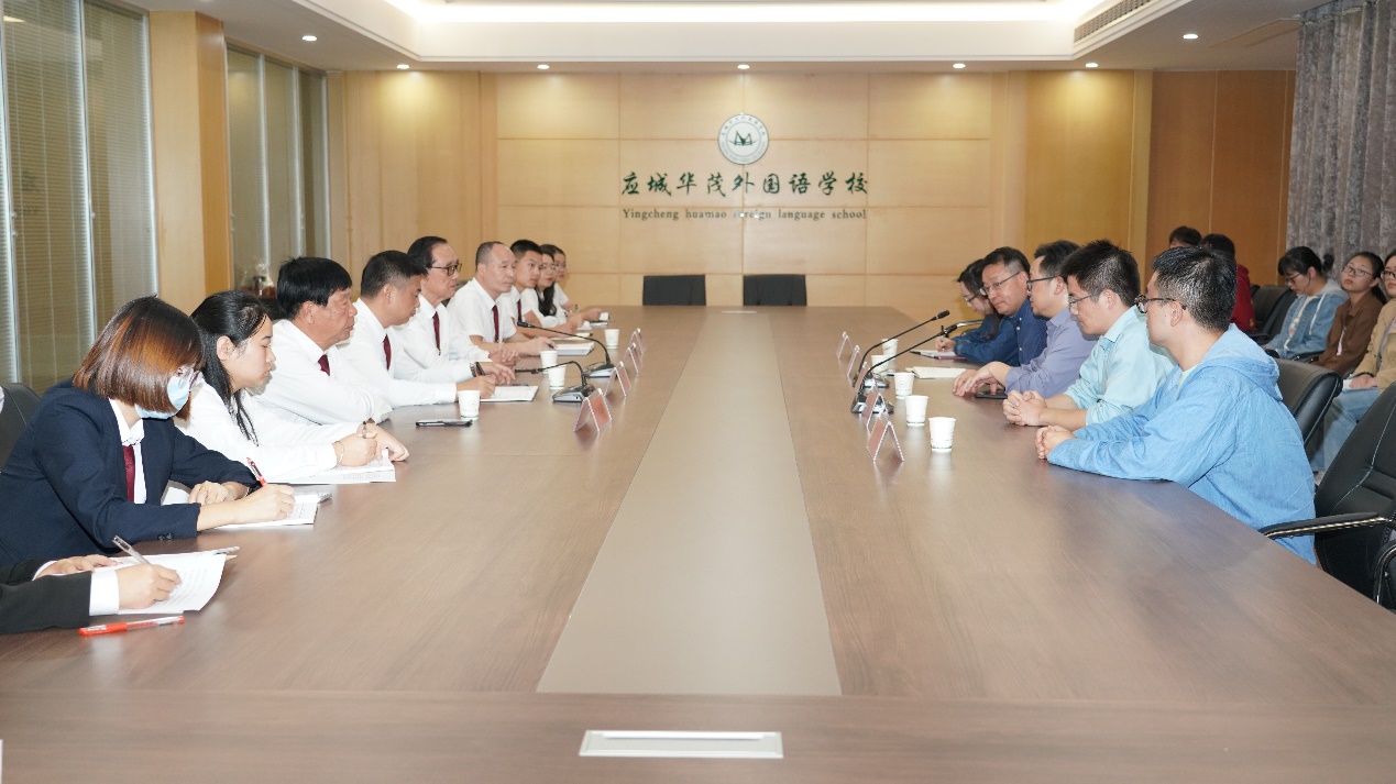 应城华茂外国语公司总董事长尹进军代表公司8000名师生欢迎beat365体育官网领导们的到来,并详细介绍了公司办学历程和实习生管理情况,就扩大实习规模、拓展人才招聘、深化教学研究、促进人才培养等方面深入交换了意见。