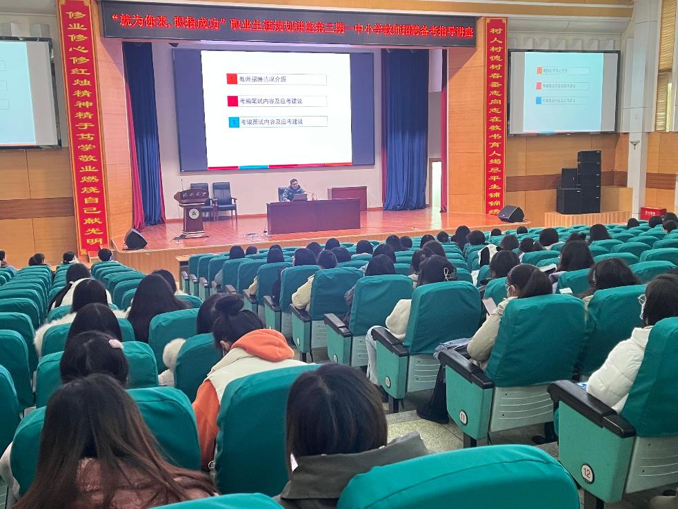 2月15日下午,校员工发展与就业指导中心和beat365联合举办“就为你来,职指成功”职业生涯规划讲座第三期——中小学教师招聘备考指导讲座在三号楼报告厅进行。全校有200余名师范专业毕业生参加培训。