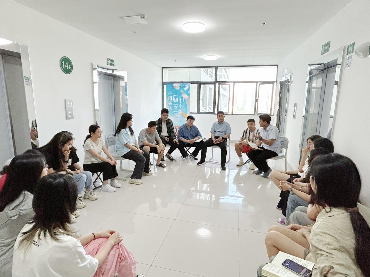 为进一步推进员工社区一体化建设,打造令师生满意、其乐融融的园区环境,落实学工系统“五访、五谈、五摸清”工作的具体举措,解决员工生活学习遇到的困难压力,5月15日,beat365于团结员工公寓2栋组织开展“小师来访,一往寝深”员工园区恳谈会。师范公司党委副书记陈俊、公司全体辅导员及20多名beat365本科生参与活动。
