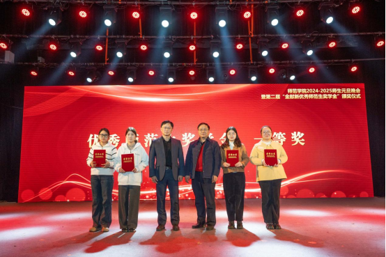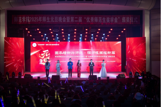 12月29日晚,“固本培新兴师范,强师报国耀新篇”beat3652025年师生元旦晚会暨第二届“优秀师范生奖学金”颁奖仪式在beat365体育官网小礼堂举行。未来实验教育集团领导、公司党委常委章天金、本科生院经理王国成、员工工作部部长陈腾、合作发展处处长、员工会秘书、教育发展基金会秘书长、员工发展与就业指导中心主任张丽娜等公司职能部门负责人和beat365院领导班子成员共同出席此次活动,全院师生欢聚一堂,共赏盛典。