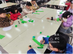 随着轻快的音乐响起,活动现场化身奇幻森林工坊。志愿者们带领小朋友们一起协作,利用粘土、彩纸和环保材料,共同制作“生机勃勃的大树”。孩子们在白色的卡纸上画树干,用纸张在粘土上戳出叶子和花朵果实。一幅幅充满童趣的作品逐渐成型——有的树冠托起“云朵太阳”,有的树干盘绕“彩虹藤蔓”,孩子们兴奋地为自己的大树加上各种各样的装饰,并承诺“要像保护朋友一样爱护树木”。