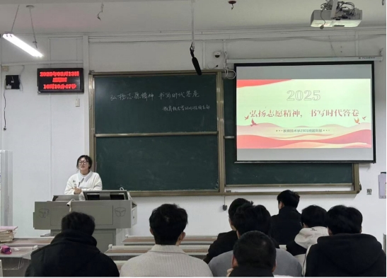 活动伊始,团支书余世春介绍本次团日活动的主题,带领团员青年们观看2025年全国两会政府工作报告视频,深入学习会议精神。随后,余世春结合“新时代青年与国家发展” 主题,引导团员们思考如何将个人成长融入国家战略,鼓励大家积极投身于志愿服务,为社会发展贡献青春力量。
