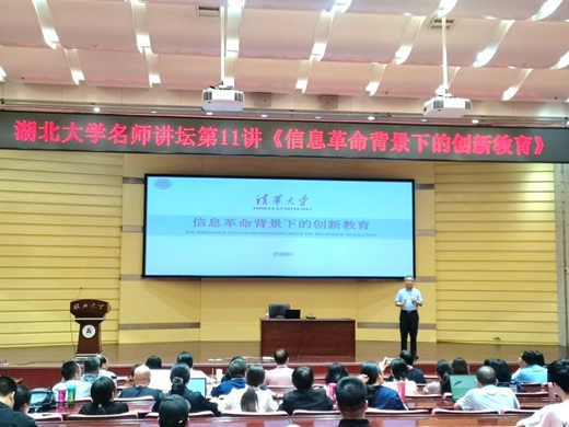 清华大学白峰杉教授做了《信息革命背景下的创新教育》主旨报告,提出信息时代的基本要求是超越未知,解放创造力。