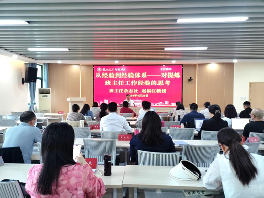 班主任杂志社社长、主编赵福江教授做了《从经验到经验体系——对提炼班主任工作经验的思考》主旨报告,通过自身教育故事提炼出班主任总结经验模式的四个层次。