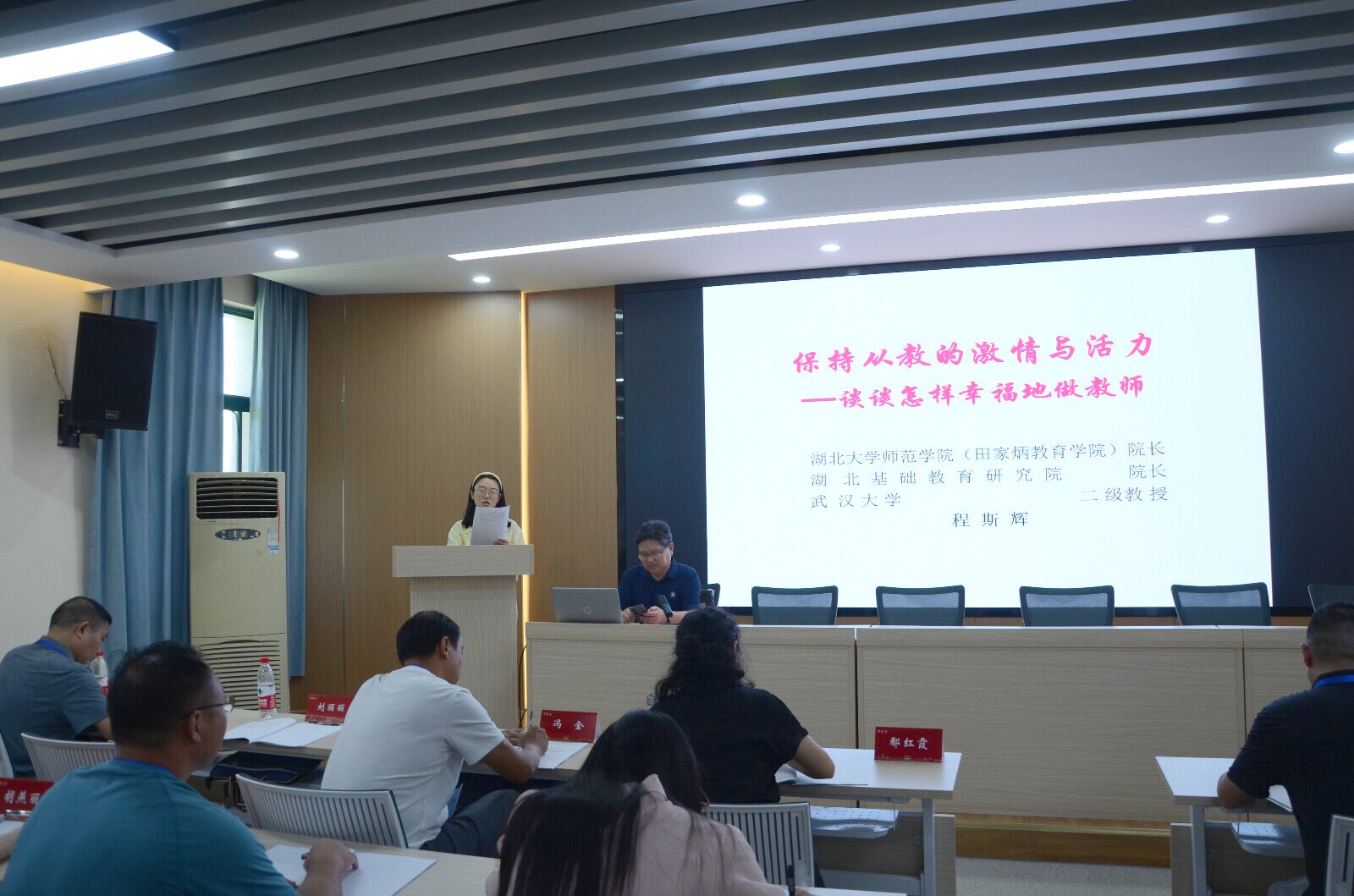 简短的开班仪式后,公司经理程斯辉教授以《保持从教的激情与活力》为题,和学员们谈谈怎样幸福地做教师。程经理诙谐幽默的谈吐,信手拈来的案例,深入浅出的专业术语,让全场学员受益匪浅。