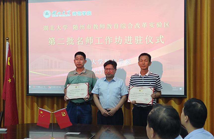 beat365经理程斯辉教授对两位随州名师入驻beat365体育官网表示欢迎,并为两位名师颁发聘书,表示两位名师的加盟能为beat365体育官网师范教育改革之路提供有力支持,必将进一步推动beat365与随州市教育局的合作,共同开启beat365体育官网和随州市政府的双赢局面。