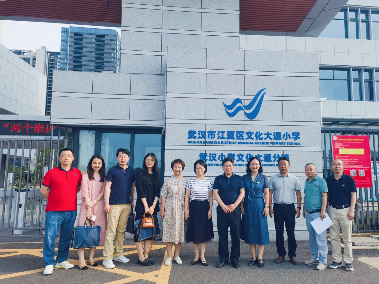 6 月 20 日,经理程斯 辉带队副经理杨兵、陈德鑫副教授、熊熊博士、刘宇佳博士赴江夏调研大桥片区教联体建设情况,江夏区教育局党委委员罗建兰、教育局督导室主任艾智亚、教学研究室副书记徐强、武汉小学董事长李强等参与调研。