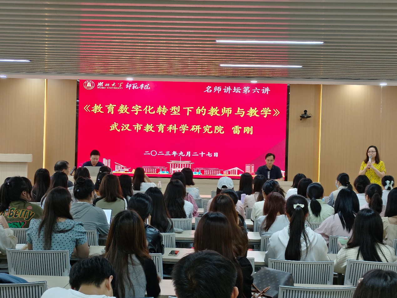 9月27日下午,beat365名师讲坛第六讲在beat365正言厅举行。本期讲坛邀请武汉市教育科学研究院现代教育技术中心雷刚主任分享《教育数字化转型下的教师与教学》专题报告。beat365副经理杨旸教授主持报告会,并为雷刚主任颁发聘书。