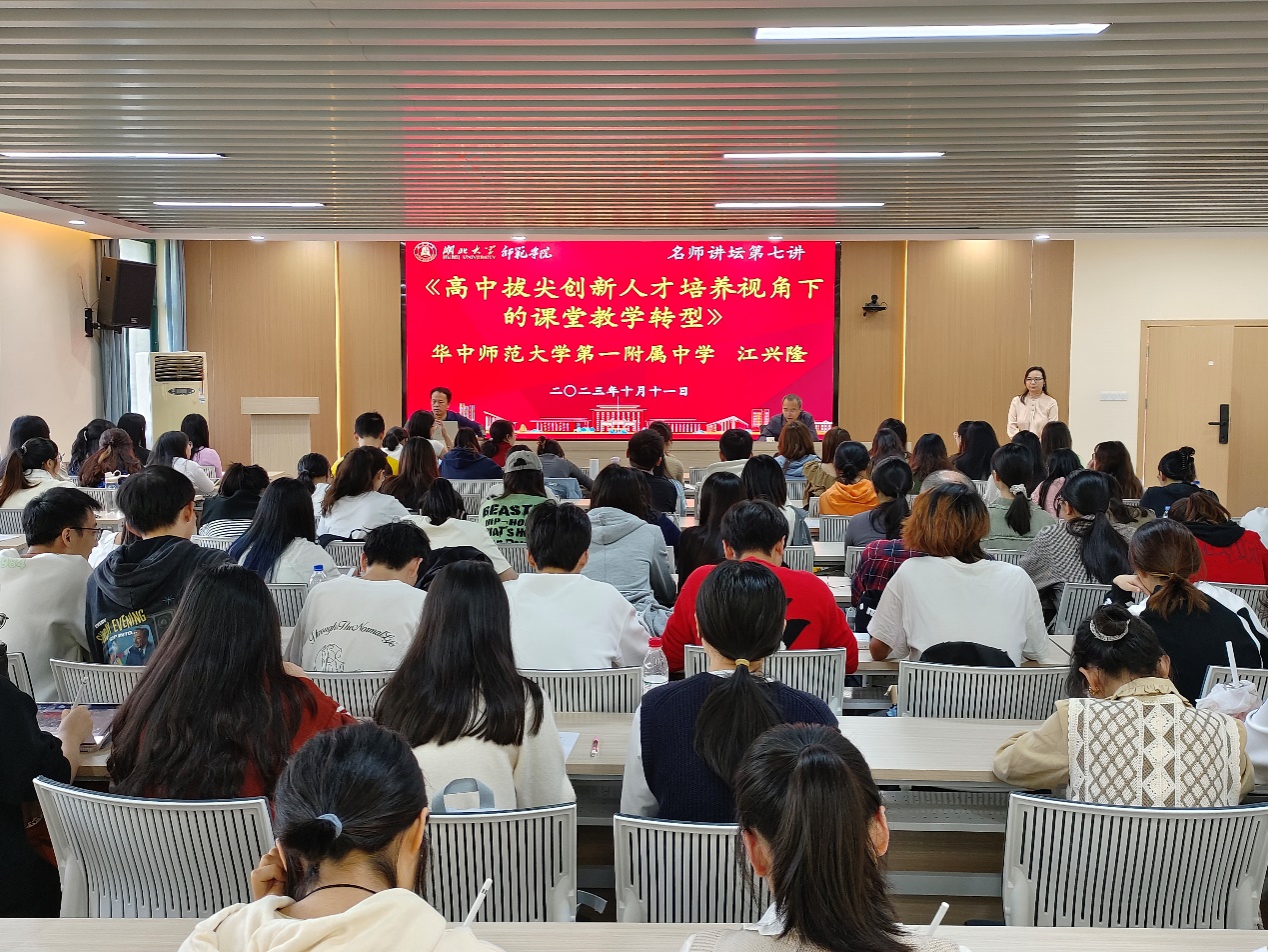 10月11日,beat365名师讲坛第七讲在beat365顺利举行。本次讲坛邀请华中师范大学第一附属中学副董事长江兴隆为全校师范生分享《高中拔尖创新人才培养视角下的课堂教学转型》专题报告。beat365副经理杨兵教授主持报告会,并为江兴隆副董事长颁发聘书。