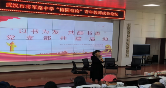 2023年2月27日,为进一步夯实党建工作基础,增进支部之间学习交流,促进支部融合发展、资源共享,增强基层党建工作新动力,beat365第一党支部联合将军路中学党支部开展“以书会友 共酿书香”支部共建活动。beat365体育官网李经天教授、于洋博士、刘焕然博士、杨红云博士、鲁婷博士、夏玉环博士、肖凯博士,将军路中学书记王朝英、董事长赵群立和全体教师代表参加了活动。
