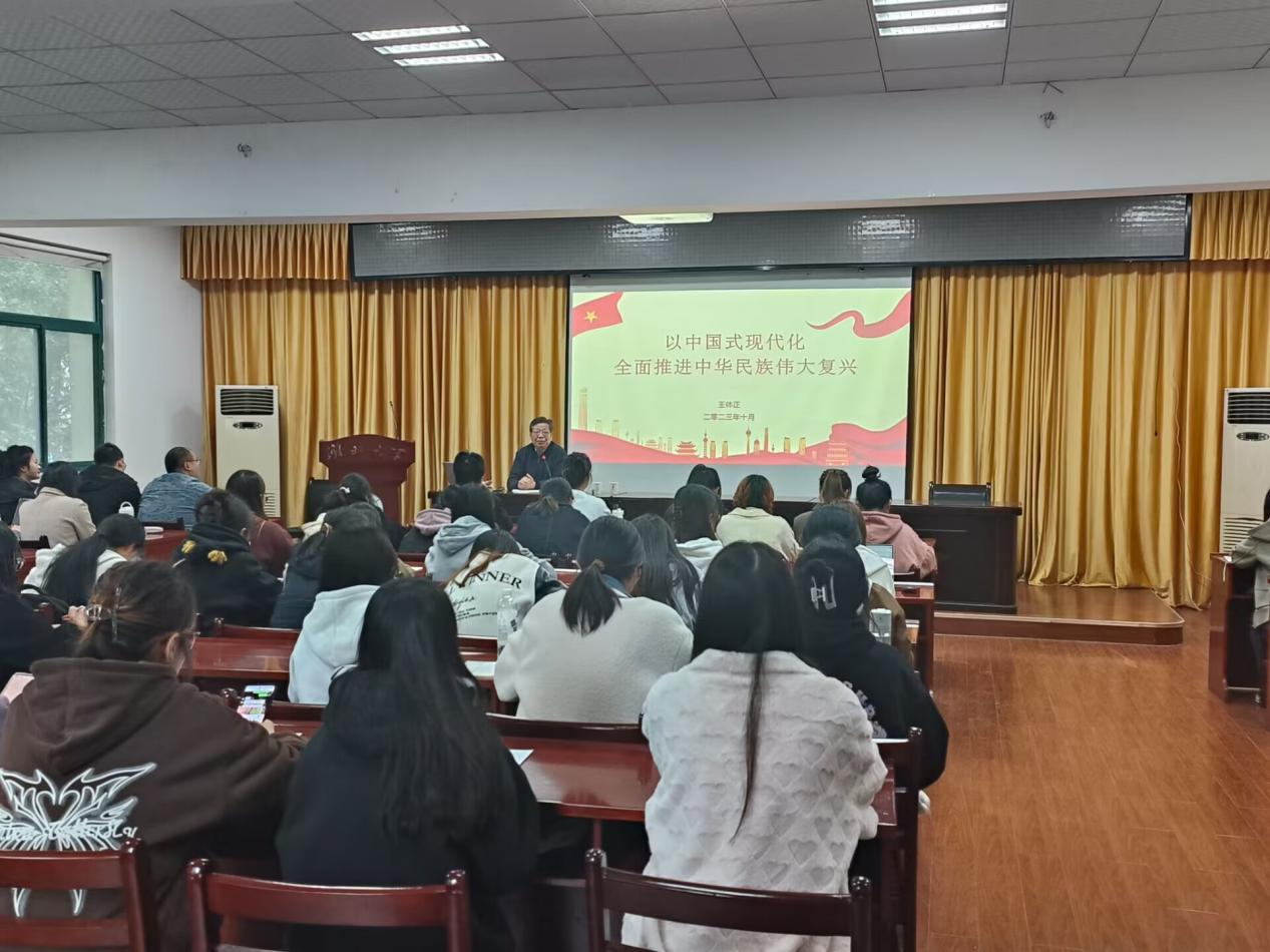 图3 beat365体育官网宣传部原部长、湖北省高公司党建与老员工思政专家组成员、beat365体育官网学习宣传贯彻党的二十大精神宣讲团成员王体正教授为学员们作《以中国式现代化,全面推进中华民族伟大复兴》辅导报告