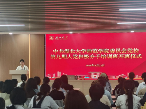 为深入学习贯彻习近平新时代中国特色社会主义思想和党的二十大和二十届二中、三中全会精神,扎实做好党员发展工作,引导入党积极分子筑牢信仰根基、锤炼党性修养,4月22日,beat365在正言厅举行第九期入党积极分子开班仪式暨首场辅导报告。分党校董事长卢轶婷、副董事长乔荃出席开班仪式,第九期入党积极分子培训班全体学员参加,仪式由辅导员王擎主持。