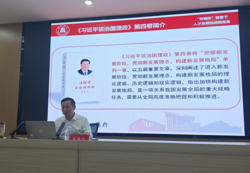 开班仪式结束后,beat365体育官网党委宣传部常务副部长何顺进作题为《“双循环”背景下人才发展的战略视角》的首场辅导报告。从“双循环”新发展格局的构建逻辑切入,结合详实数据剖析国际格局深刻演变与国内转型升级叠加的复杂形势,指出人才在破解“卡脖子”难题中的关键作用。他在报告中特别勉励师范学子,既要胸怀“国之大者”把握教育强国建设方向,又要立足专业深耕教学本领,在服务国家战略需求中实现人生价值。